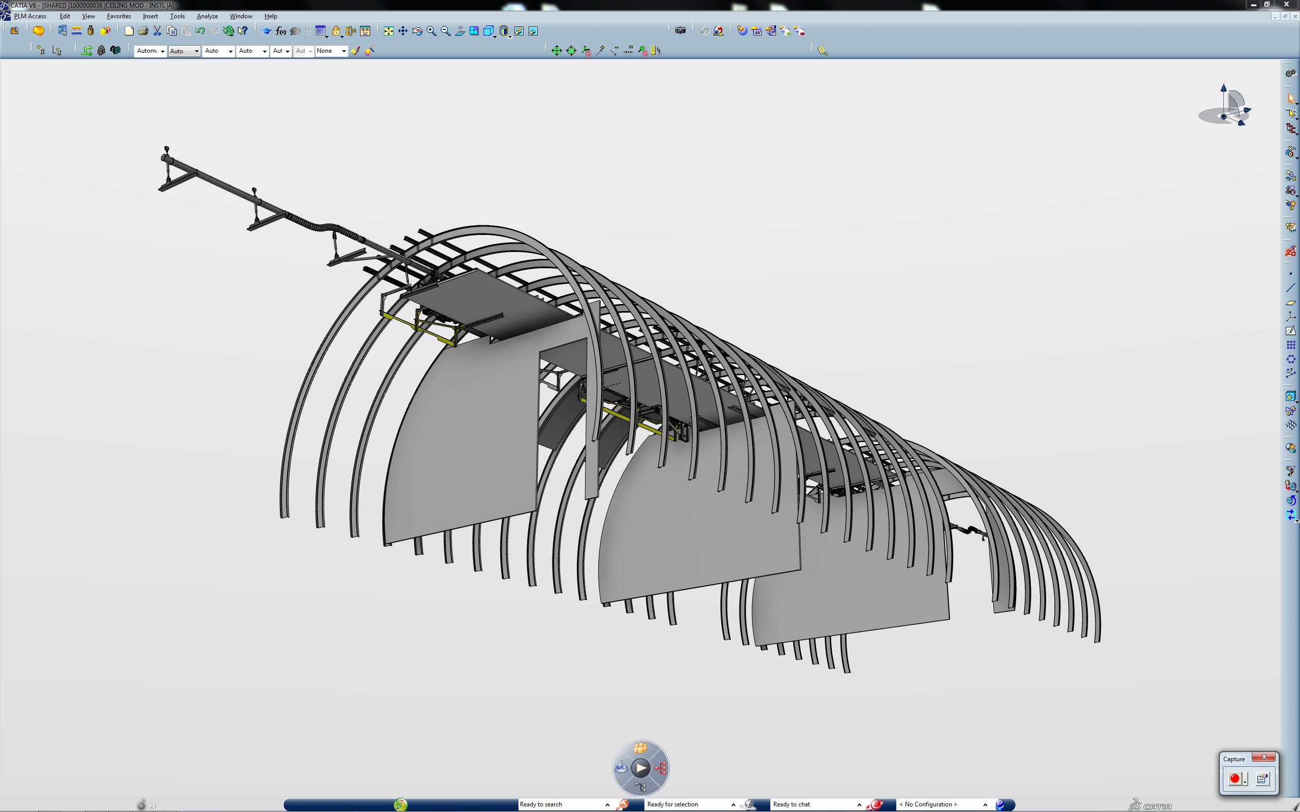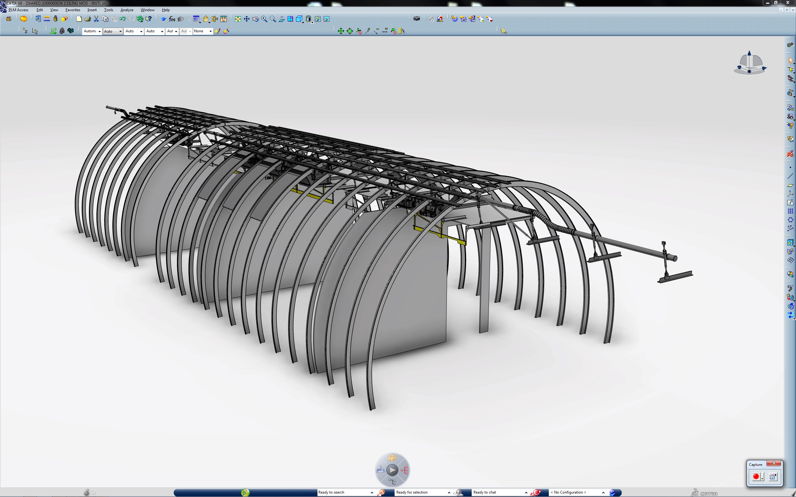 To validate our long-lead time high-cost components and Secondary Structure attachments required for this mod, a partial DMU of the B767 fuselage was modelled to provide lengths and support structure for drawing creation.