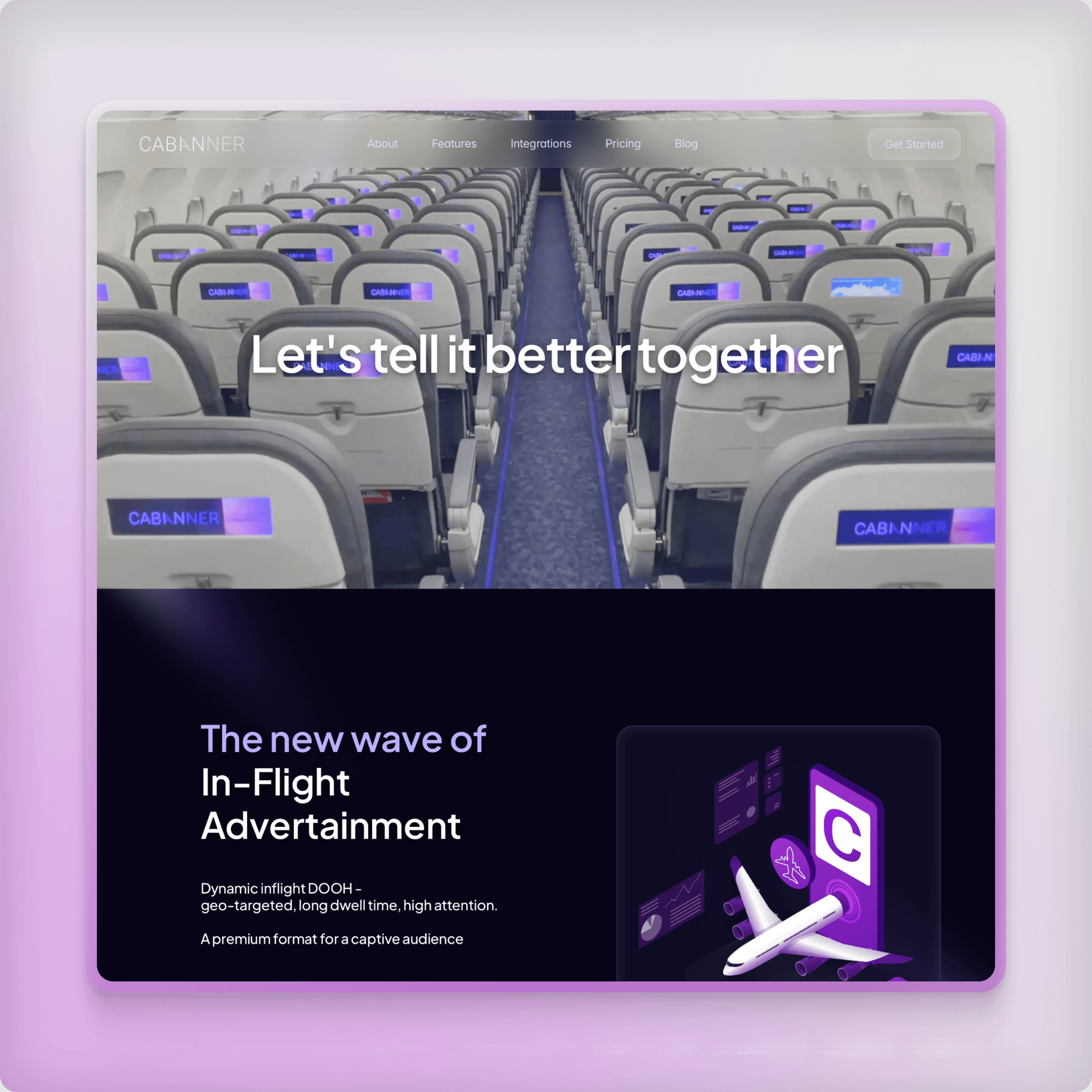Cabanner, a market disrupting company in the 'In-Flight Advertainment' sector, faced low conversion rates on its Wix-built landing page. Visitors browsed but rarely completed inquiries and the website didnt really reflect the progress the company has made in the last years. The goal was to enhance the UI/UX to improve storytelling, user flow and drive more conversions.